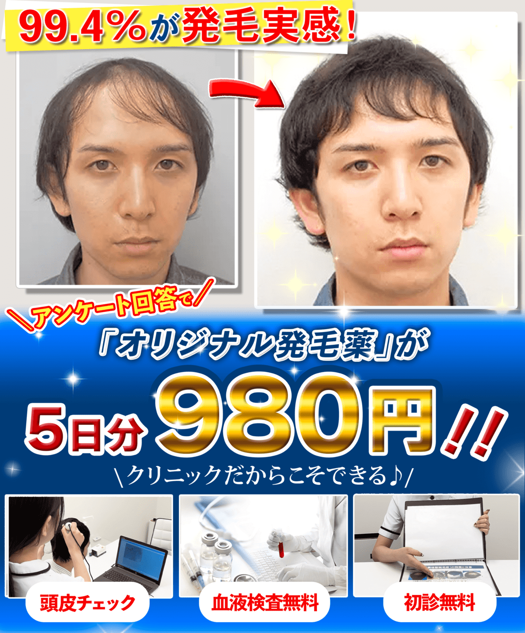 ※発毛実感率は2011年5月〜2013年1月の期間に治療を6ヶ月間継続した400名の患者様を対象に